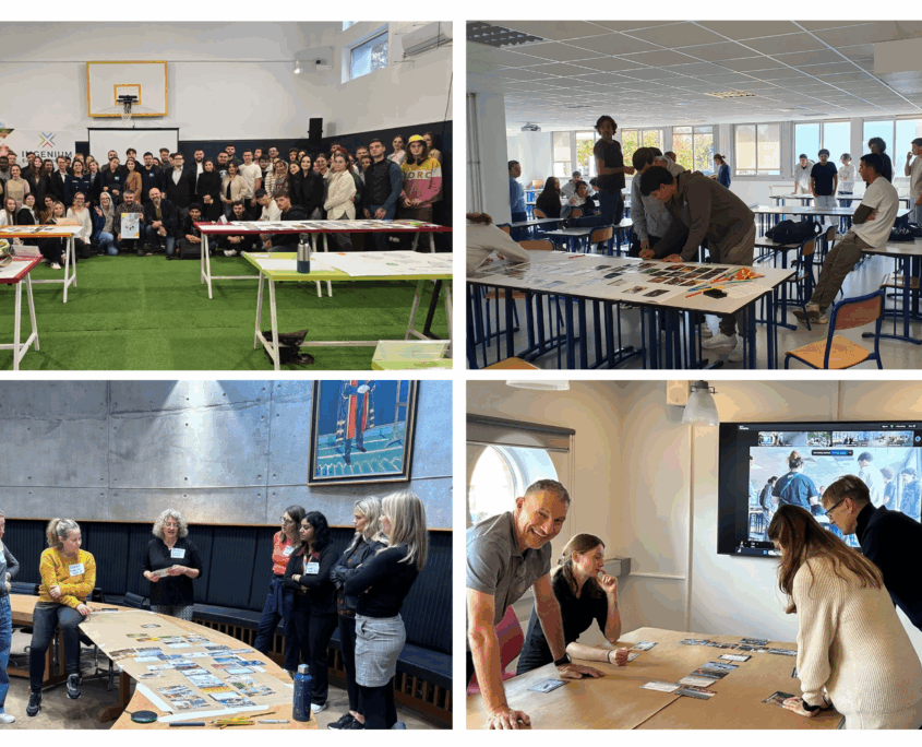 From right to left: Climate Fresks at TUIASI (Romania), URN (France), MTU (Ireland), and HiS (Sweden)
